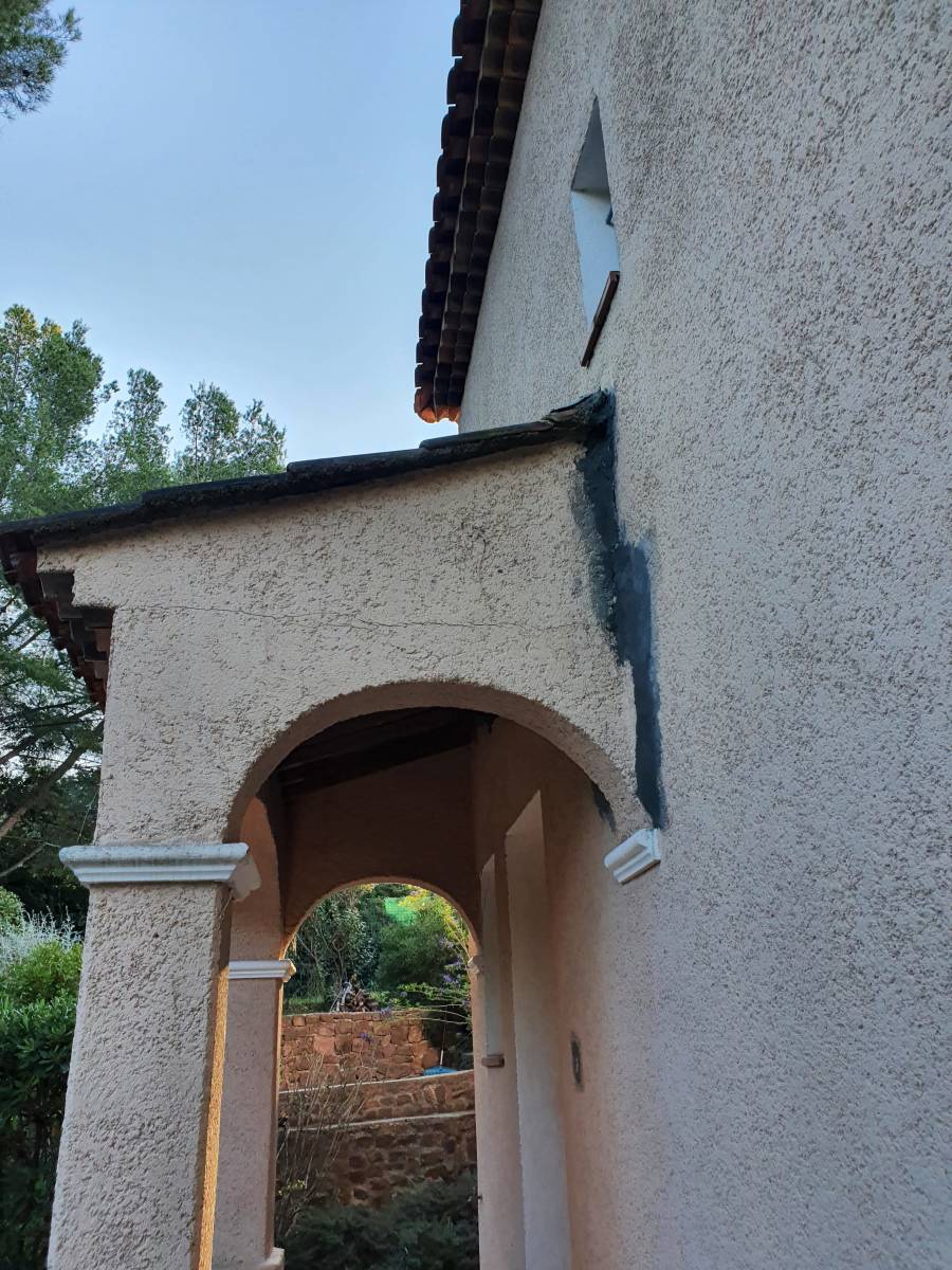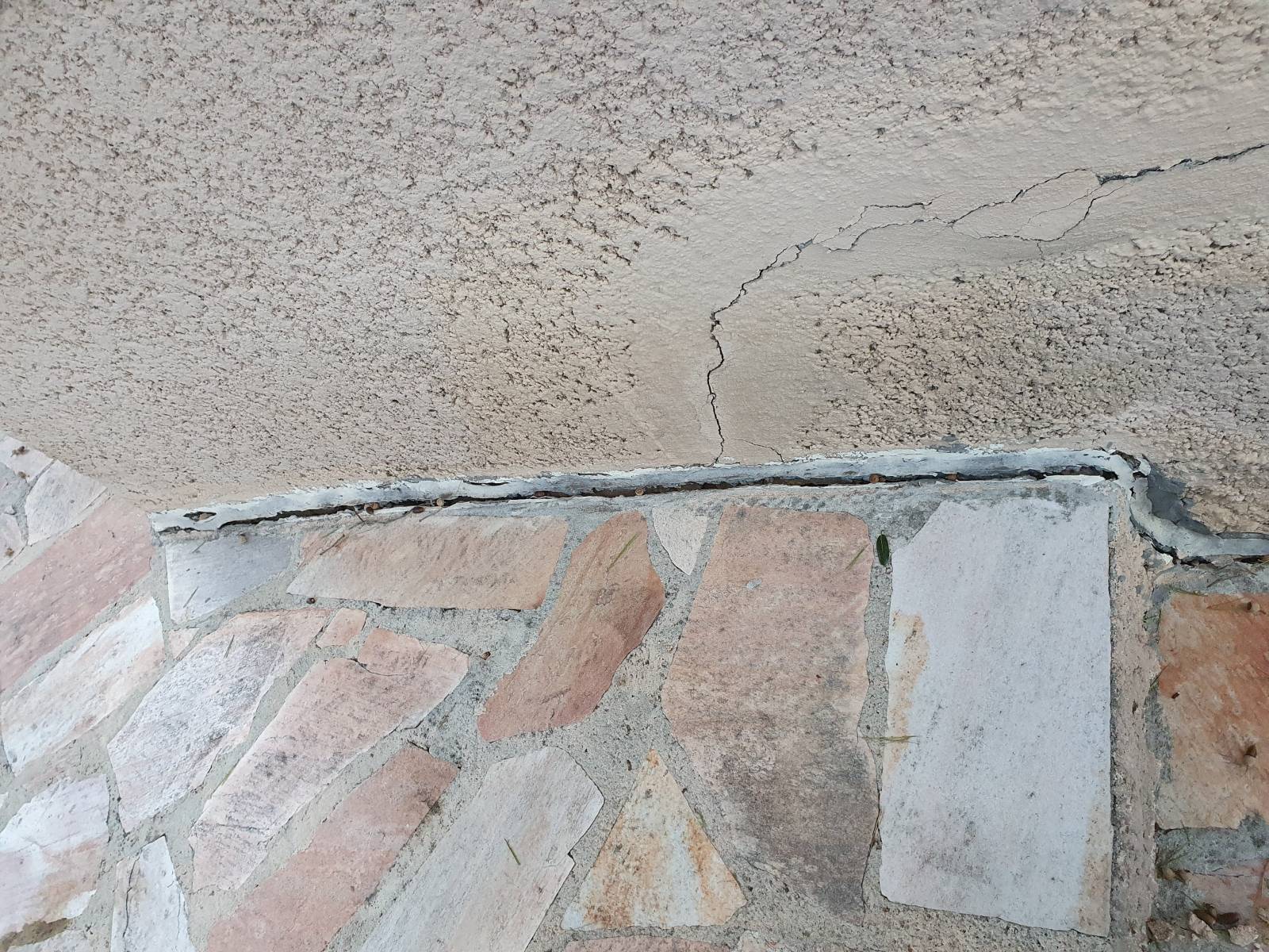 Nous avons constaté que certaines fissures étaient dues au tassement de la terrasse périphérique, en lien avec un phénomène de retrait-gonflement des sols argileux.