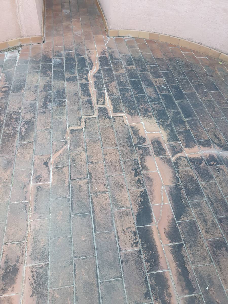 Nous avons constaté que ce dallage s’était affaissé, entraînant l’apparition de fissures importantes, révélatrices d’un mouvement du support et/ou d’une portance insuffisante du sol sous-jacent.