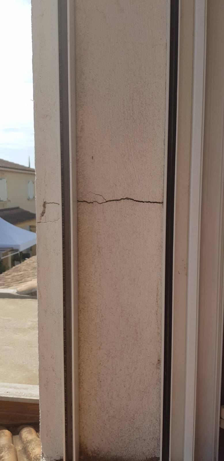 Lors de notre visite, nous avons notamment examiné les fissurations présentes au niveau des tableaux de fenêtres.